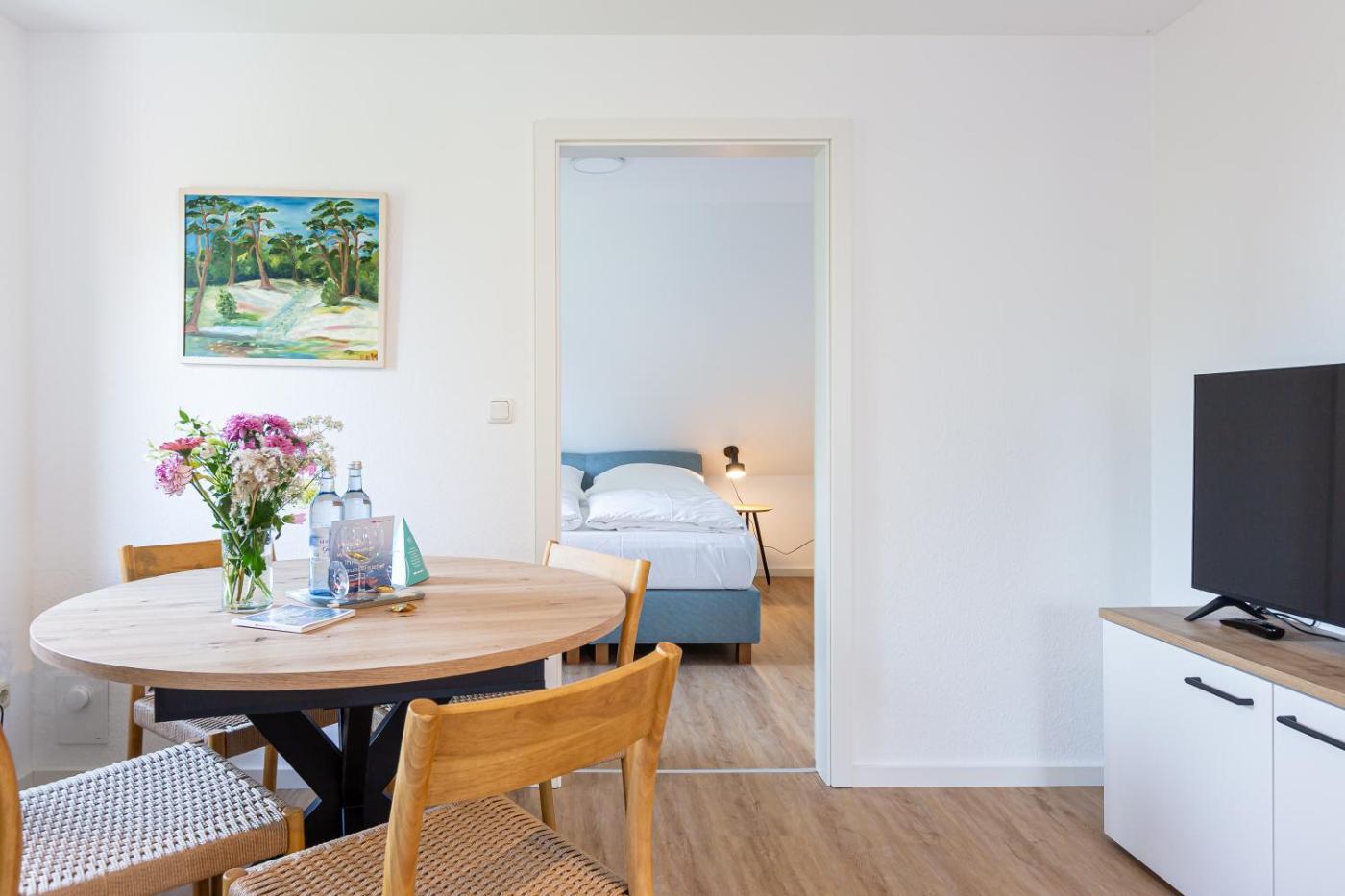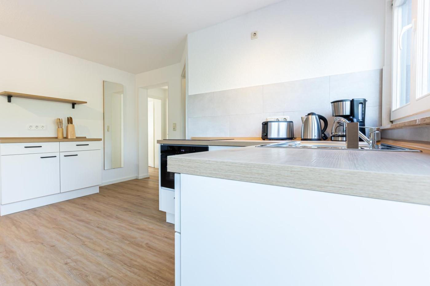 Apartment mit Balkon. This spacious apartment consists of a kitchen, a seating area, 2 separate bedrooms and 1 bathroom with a shower and a hairdryer. In the fully equipped kitchen, guests will find a stovetop, a refrigerator, a dishwasher and kitchenware. Featuring a balcony, this apartment also provides a wardrobe, an electric kettle and a flat-screen TV. The unit offers 2 beds.