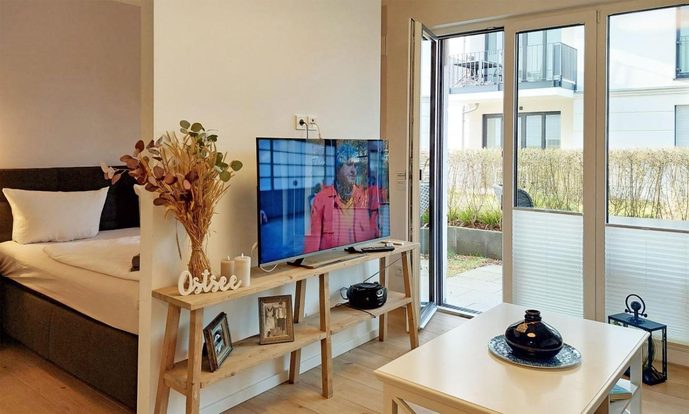 Apartment mit Terrasse. Featuring a private entrance, this apartment also comprises 1 living room, 1 separate bedroom and 1 bathroom with a walk-in shower. The fully equipped kitchenette features a stovetop, a refrigerator, a dishwasher and kitchenware. Boasting a terrace with garden views, this apartment also provides a coffee machine and a flat-screen TV with cable channels. The unit offers 1 bed.