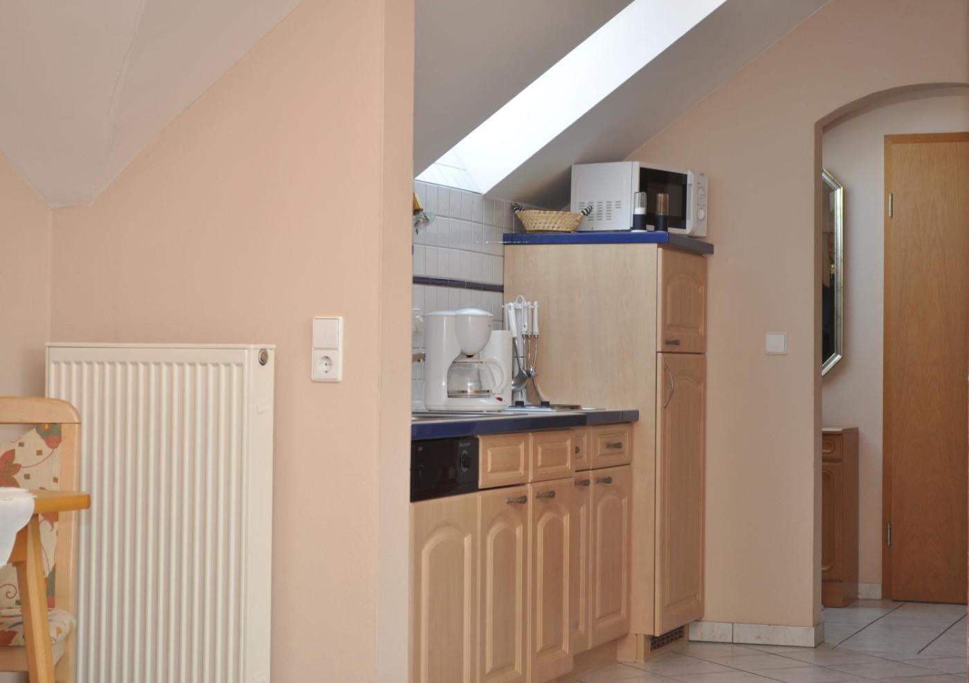 Deluxe Apartment. This Apartment is located in the neighbouring building. It faces the garden and features a separated living and sleeping area, a balcony, a double bed a dining corner, a TV, a kitchenette and coffeetea making facilities. Wi-Fi access is available. Bed linen is provided. ;