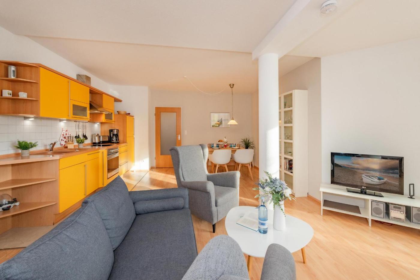 Apartment mit Terrasse. Featuring 1 bedroom, this spacious apartment offers 1 bathroom with a shower, a seating area and terraceyou can relax. The well-equipped kitchen features a stovetop, a refrigerator, a dishwasher and kitchenware. The apartment provides a coffee machine, a wardrobe, a sofa, as well as a TV with cable channels. The unit has 1 bed.