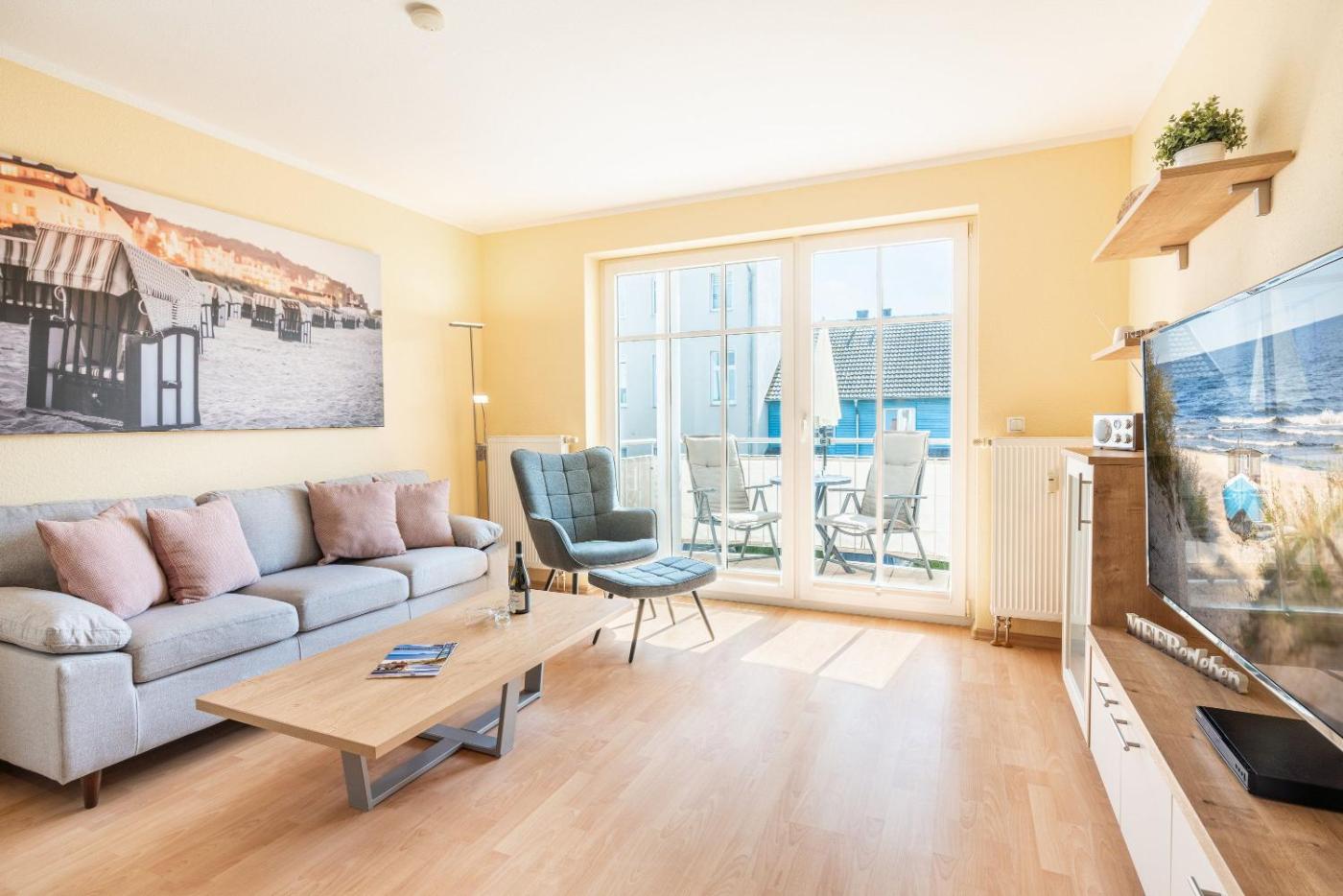 Apartment mit 2 Schlafzimmern und Balkon. This spacious apartment includes 1 living room, 2 separate bedrooms and 1 bathroom with a walk-in shower and a hairdryer. Meals can be prepared in the kitchenette, which has a stovetop, a refrigerator, a dishwasher and kitchenware. This apartment has a washing machine, a coffee machine, a flat-screen TV and a balcony. The unit has 3 beds.