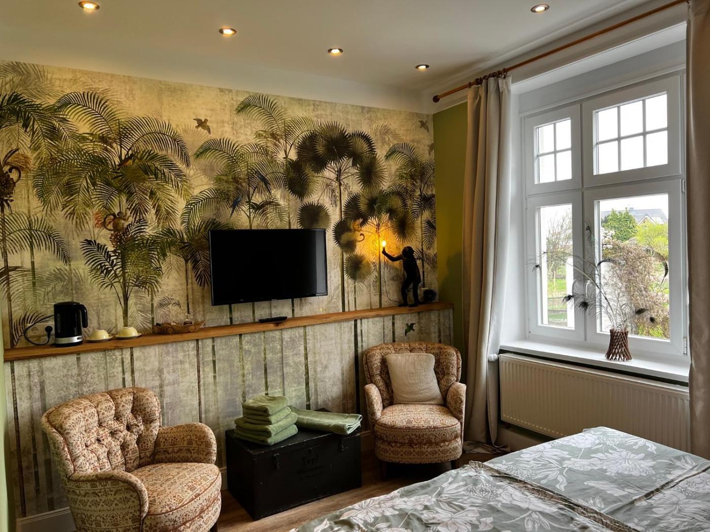 Doppelzimmer. The double room features a private bathroom equipped with a shower and a hairdryer. The spacious double room provides a flat-screen TV with satellite channels, a wardrobe, an electric kettle, parquet floors as well as garden views. The unit offers 2 beds. ;