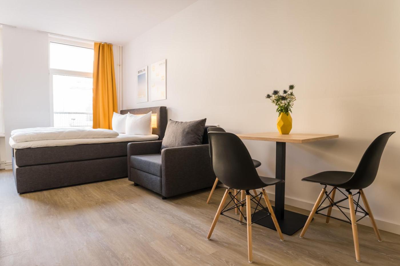 Standard Studio für 3 Personen. Dieses Studio verfügt über ein Sofa, Heizung sowie ein eigenes Bad mit einer Dusche und einem Haartrockner. Zur gut ausgestatteten Küche gehören ein Kühlschrank, ein Geschirrspüler, Küchenutensilien und eine Mikrowelle. Das Studio bietet darüber hinaus einen Flachbild-Kabel-TV, eine Kaffeemaschine, einen Sitzbereich, einen Kleiderschrank und Blick auf einen Innenhof. In dieser Wohneinheit befinden sich 2 Betten. ;