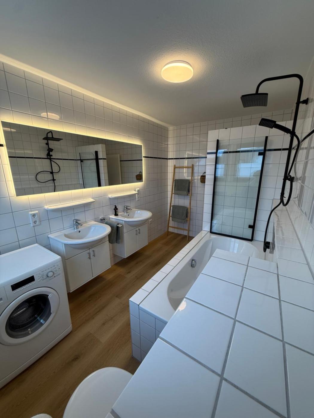 Apartment mit 2 Schlafzimmern. Featuring a private entrance, this apartment is comprised of 1 living room, 2 separate bedrooms and 2 bathrooms with a bath and a hairdryer. Meals can be prepared in the well-fitted kitchen, which is fitted with a stovetop, a refrigerator, a dishwasher and kitchenware. The apartment offers a washing machine, a coffee machine, a dining area, a flat-screen TV, as well as city views. The unit offers 2 beds.