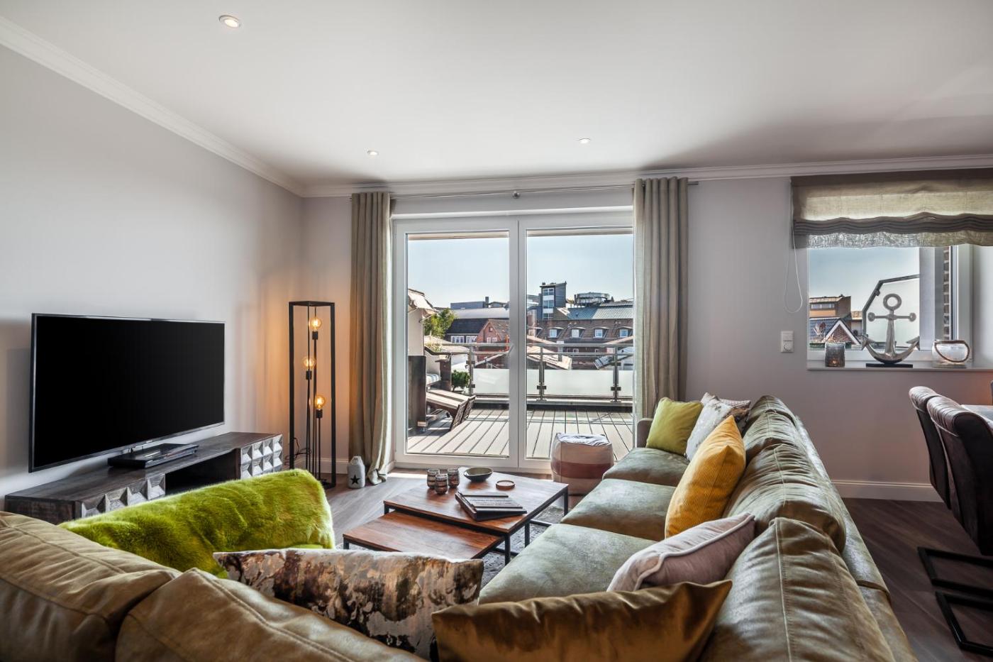 Apartment mit Meerblick. This spacious apartment consists of a kitchen, a seating area, 3 separate bedrooms and 2 bathrooms with a bath and a shower. The well-fitted kitchen features a stovetop, a refrigerator, a dishwasher and kitchenware. Featuring a balcony with sea views, this apartment also provides a washing machine and a TV. The unit offers 4 beds.