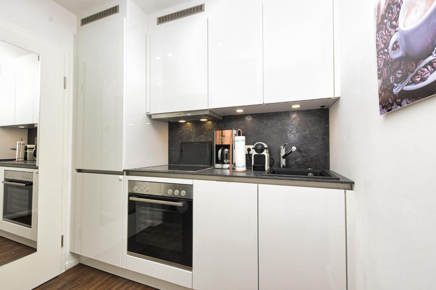 Diese Ferienwohnung besteht aus 1 Schlafzimmer, einem Wohnzimmer, einer voll ausgestatteten Küche mit einem Kühlschrank und einer Kaffeemaschine sowie 1 Badezimmer mit einer Dusche und einem Whirlpool.