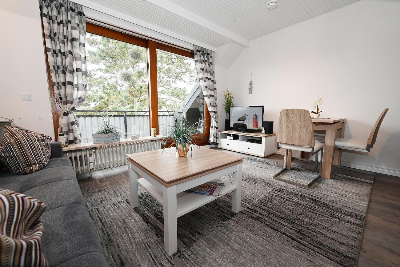 Apartment mit Balkon. This apartment is comprised of 2 bedrooms, a seating area with a sofa and 1 bathroom with a shower. The fully equipped kitchen features a stovetop, a refrigerator, a dishwasher and kitchenware. This apartment has a coffee machine, a wardrobe, a TV and a balcony. The unit offers 2 beds.
