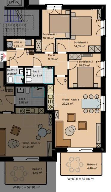 Apartment mit Balkon. This spacious apartment comes with a kitchen, a seating area, 3 separate bedrooms and 2 bathrooms with a shower and a hairdryer. Guests can make meals in the kitchen that features a stovetop, a refrigerator, a dishwasher and kitchenware. Boasting a balcony with garden views, this apartment also features a washing machine and a TV. The unit has 3 beds.