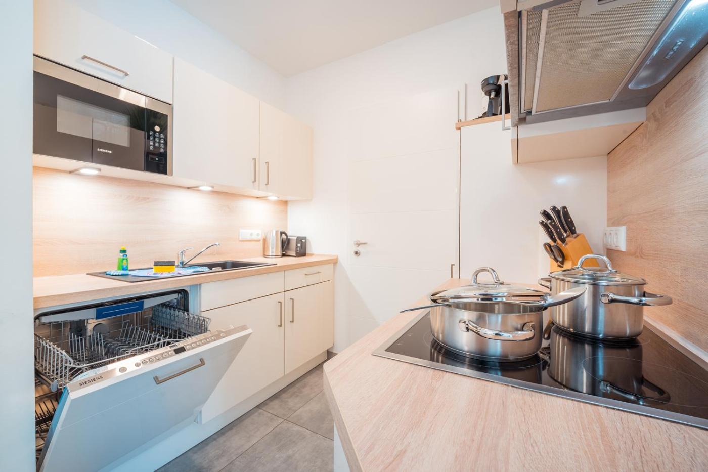 Apartment mit Terrasse. This apartment comprises 1 living room, 1 separate bedroom and 1 bathroom with a shower and a hairdryer. Guests will find a stovetop, a refrigerator, a dishwasher and kitchenware in the well-equipped kitchen. The apartment also provides guests with a barbecue. Featuring a terrace, this apartment also provides a washing machine, a coffee machine and a TV with satellite channels. The unit offers 2 beds.