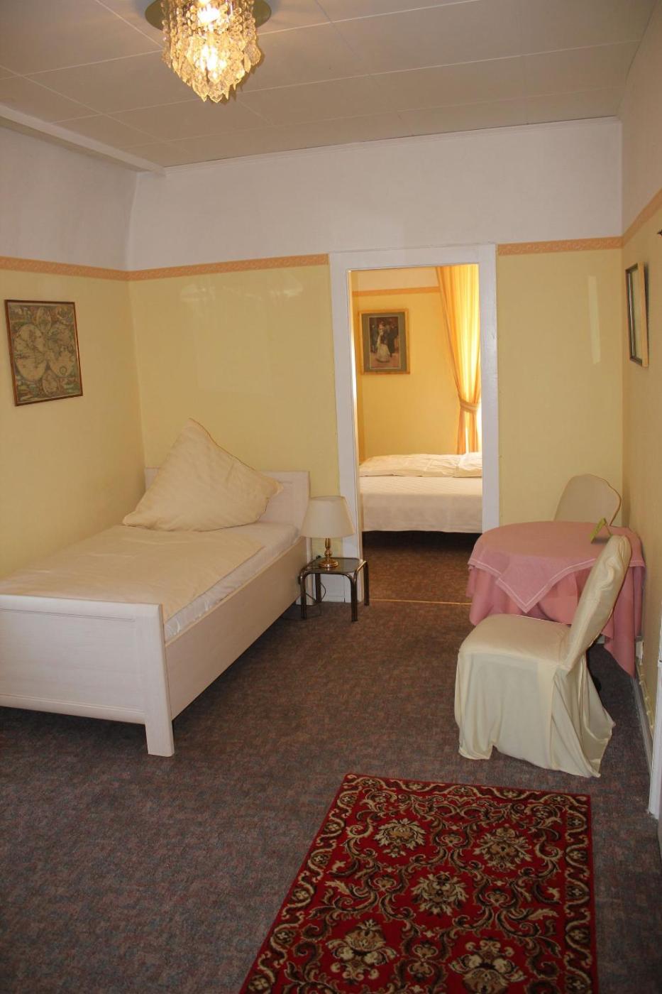 Standard Dreibettzimmer. The triple room provides a flat-screen TV with cable channels, a wardrobe, a carpeted floor, heating as well as garden views. The unit offers 2 beds. ;