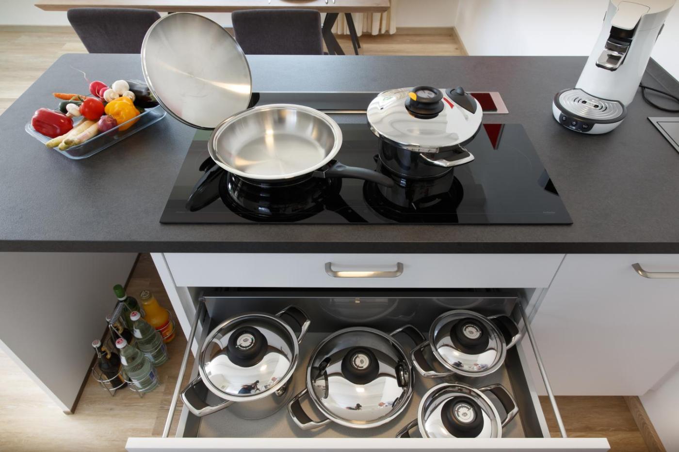 Die Unterkunft Ferienhaus Schlamminger bietet ihren Gästen eine Terrasse, einen Sitzbereich, einen Flachbild-TV, eine voll ausgestattete Küchenzeile mit einem Kühlschrank und einem Geschirrspüler sowie ein eigenes Badezimmer mit einer Dusche und einem Haartrockner. Es gibt einen Ofen, eine Herdplatte und einen Toaster sowie eine Kaffeemaschine und einen Wasserkocher.