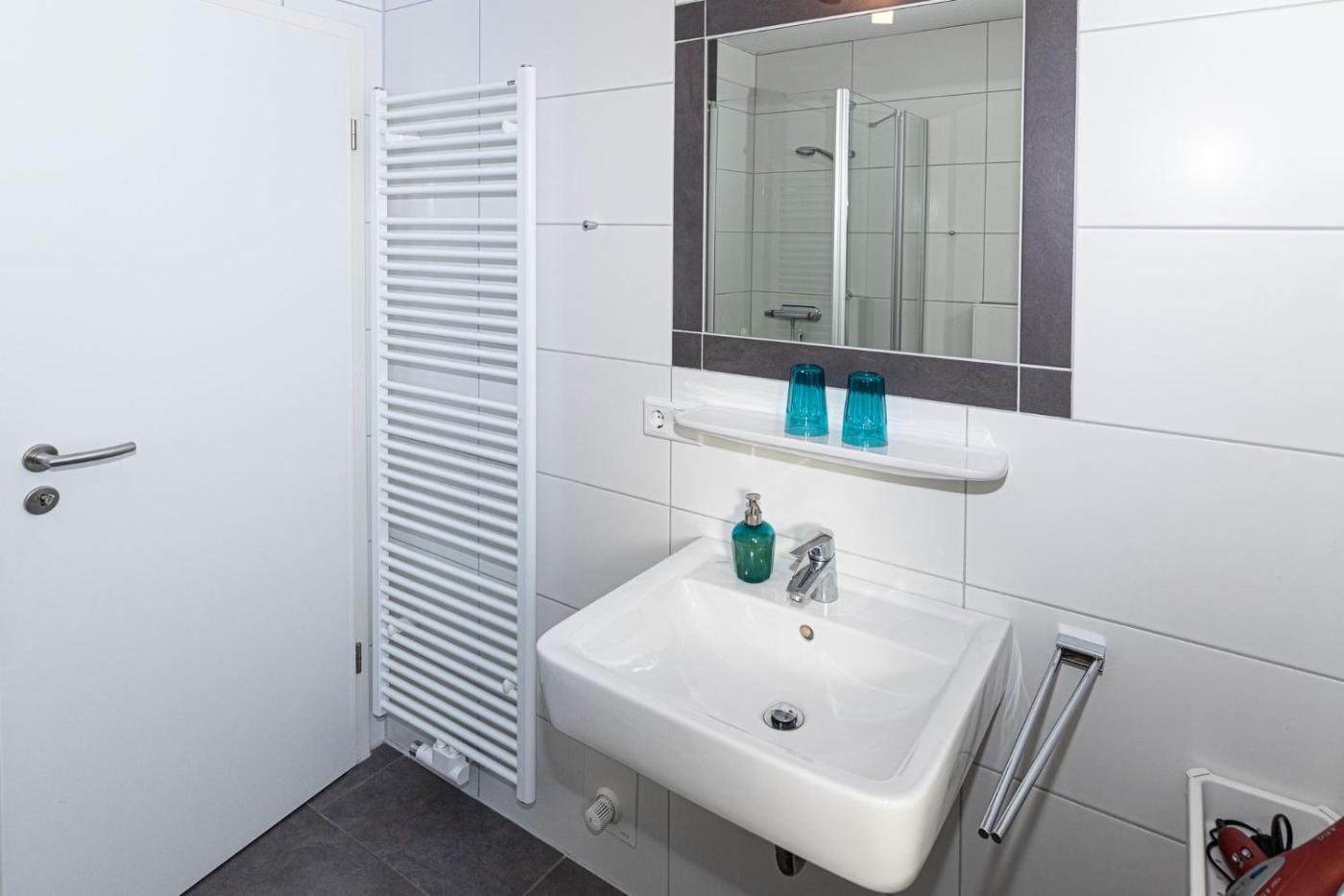 Die Unterkunft Residenz Cuxhaven Döse, Elbwelle ist ausgestattet mit 2 Schlafzimmern, einer Küche mit einem Kühlschrank und einem Geschirrspüler, einer Waschmaschine und 1 Badezimmer mit einem Haartrockner. Es gibt einen TV und einen CD-Player.
