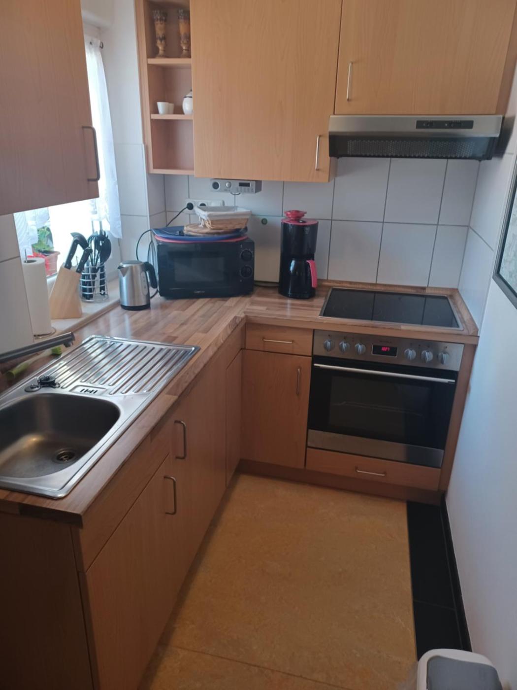 Diese Ferienwohnung befindet sich im Erdgeschoss und ist ausgestattet mit 1 Schlafzimmer, einem Flachbild-TV und einer voll ausgestatteten Küche, die den Gästen einen Kühlschrank, einen Ofen, eine Waschmaschine, eine Mikrowelle sowie eine Herdplatte bietet. In dieser Ferienwohnung werden Handtücher und Bettwäsche zur Verfügung gestellt.