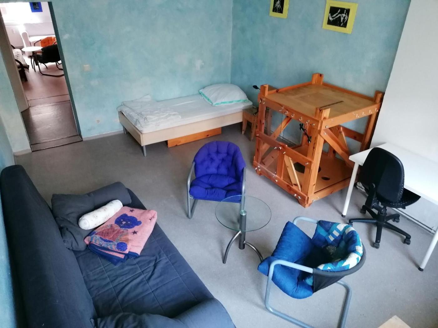 Standard Einzelzimmer mit Gemeinschaftsbad. The single room provides a seating area and a dining area, as well as a shared bathroom featuring a shower. In the kitchen, guests will find a stovetop, a refrigerator, kitchenware and a tea and coffee maker. The single room offers a wardrobe and heating. The unit offers 1 bed. ;