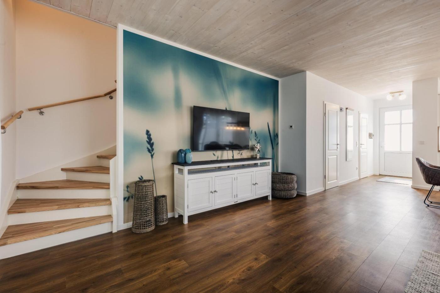Ferienhaus. This holiday homes special feature is the fireplace. Featuring a private entrance, this holiday home comprises 1 living room, 2 separate bedrooms and 2 bathrooms with a shower and a hairdryer. Guests can make meals in the kitchen that is equipped with a stovetop, a refrigerator, a dishwasher and kitchenware. Boasting a terrace with sea views, this holiday home also provides a coffee machine and a TV. The unit offers 3 beds.