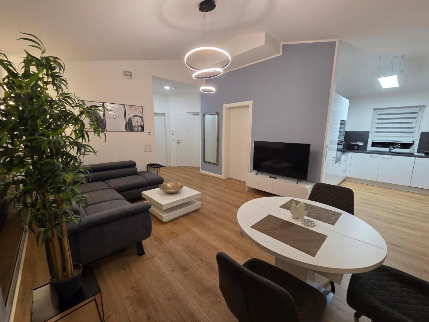 Penthouse-Apartment. This spacious apartment features 1 living room, 1 separate bedroom and 1 bathroom with a walk-in shower and a hairdryer. The well-equipped kitchen has a stovetop, a refrigerator, a dishwasher and kitchenware. Boasting a terrace with garden views, this apartment also features soundproof walls and a flat-screen TV with streaming services. The unit has 2 beds. ;