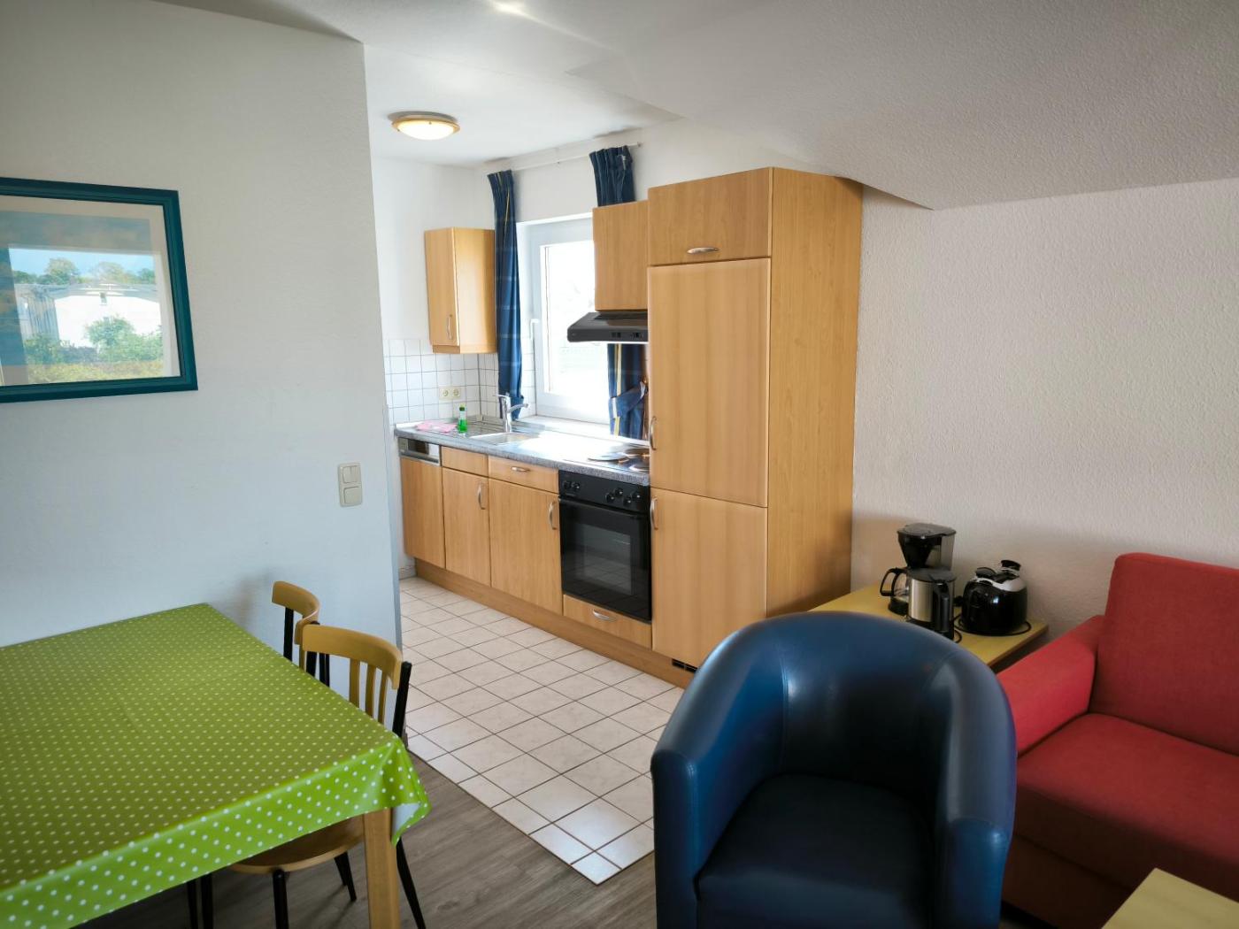 Apartment mit Balkon. This apartment is comprised of 1 living room, 1 separate bedroom and 1 bathroom with a shower. In the well-fitted kitchen, guests will find a stovetop, a refrigerator, a dishwasher and kitchenware. A seating area with a TV, a coffee machine and a balcony are featured in this apartment. The unit offers 2 beds.