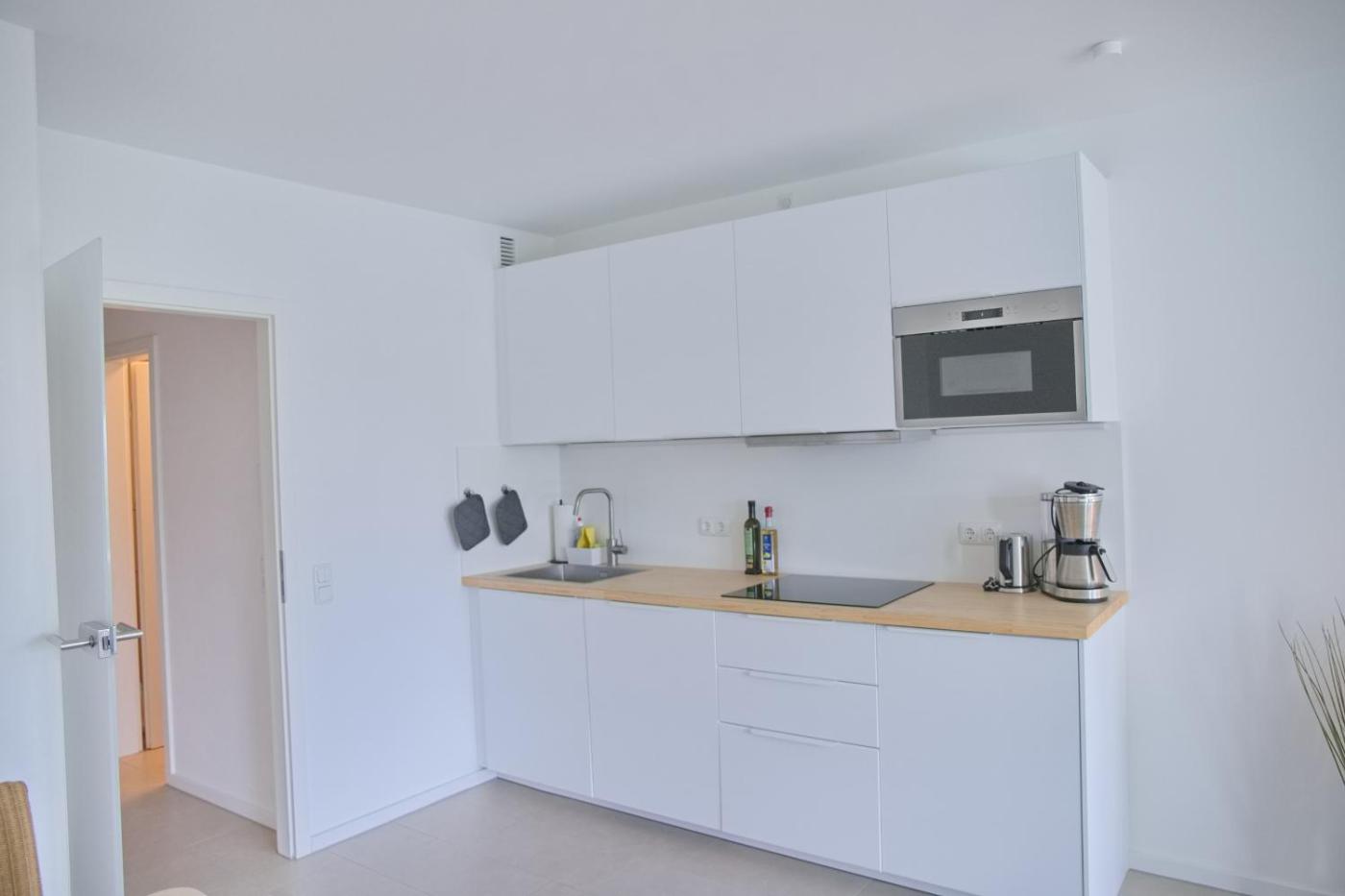 Apartment mit Meerblick. This apartment consists of 1 living room, 1 separate bedroom and 1 bathroom with a shower. Guests can make meals in the kitchen that is equipped with a stovetop, a refrigerator, a dishwasher and kitchenware. Featuring a balcony with sea views, this apartment also provides a washing machine and a TV. The unit offers 2 beds.