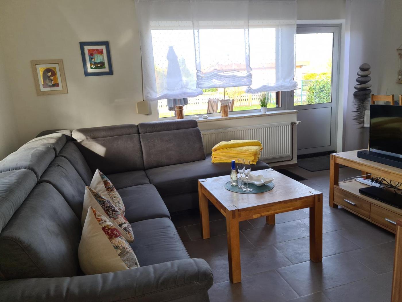 Ferienhaus. This holiday homes standout feature is the fireplace. Featuring a private entrance, this holiday home is comprised of 1 living room, 2 separate bedrooms and 1 bathroom with a walk-in shower and a hairdryer. Guests will find a stovetop, a refrigerator, a dishwasher and an oven in the fully equipped kitchen. The holiday home also has a barbecue. Boasting a terrace with garden views, this holiday home also offers a washing machine and a flat-screen TV with satellite channels. The unit offers 3 beds.