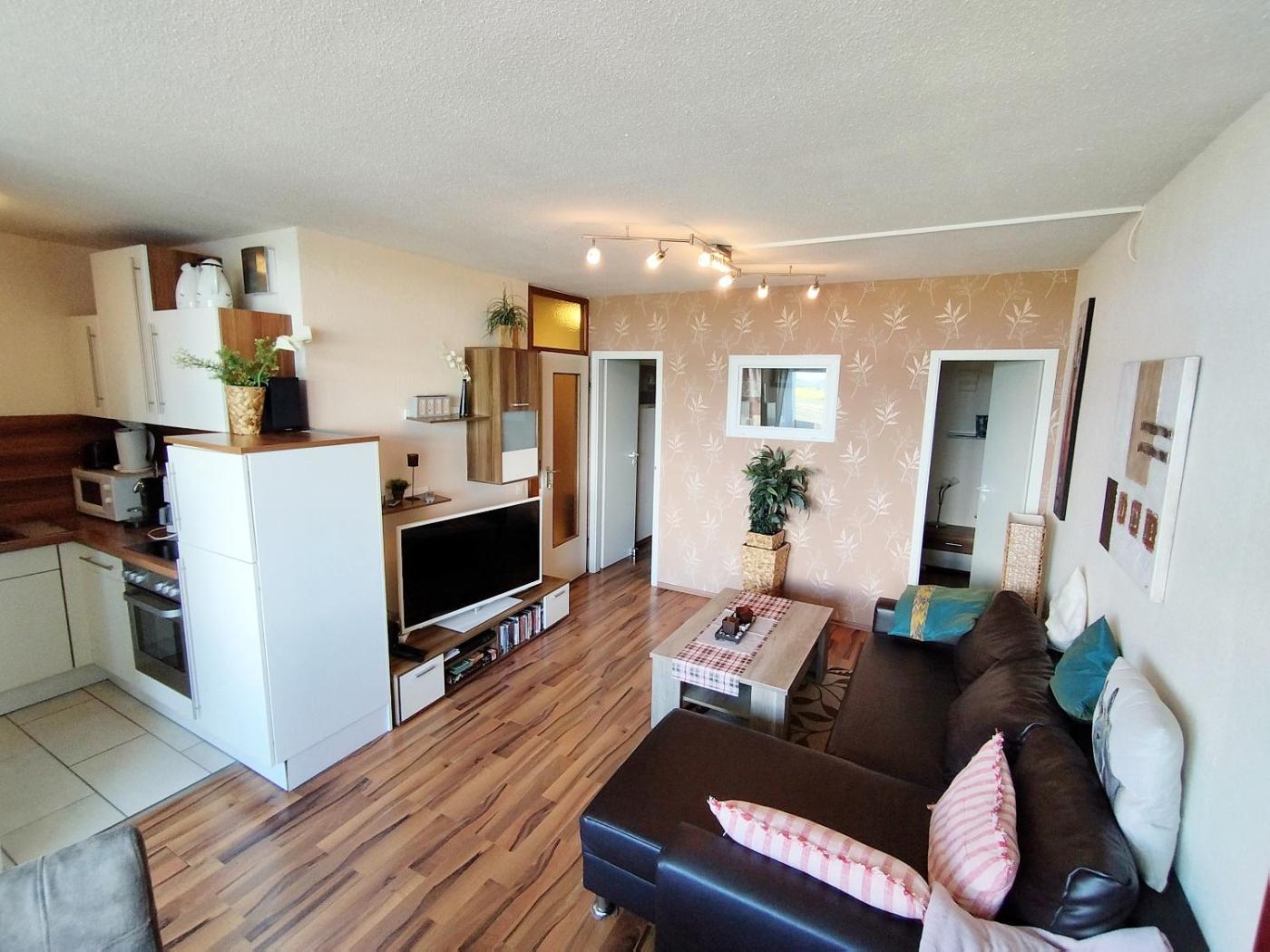 Apartment mit Meerblick. This apartment is comprised of 2 bedrooms, a seating area with a sofa and 1 bathroom with a shower. The well-fitted kitchen features a stovetop, a refrigerator, a dishwasher and kitchenware. Featuring a balcony with sea views, this apartment also offers a coffee machine and a flat-screen TV with satellite channels. The unit offers 2 beds.