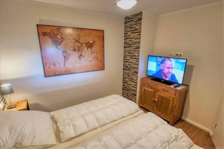 Apartment mit 2 Schlafzimmern und Balkon. This apartment includes 2 bedrooms, a kitchenette and 1 bathroom with a shower. In the well-fitted kitchenette, guests will find a refrigerator, a dishwasher, an oven and a microwave. Boasting a balcony with sea views, this apartment also offers a coffee machine and a flat-screen TV. The unit has 2 beds.