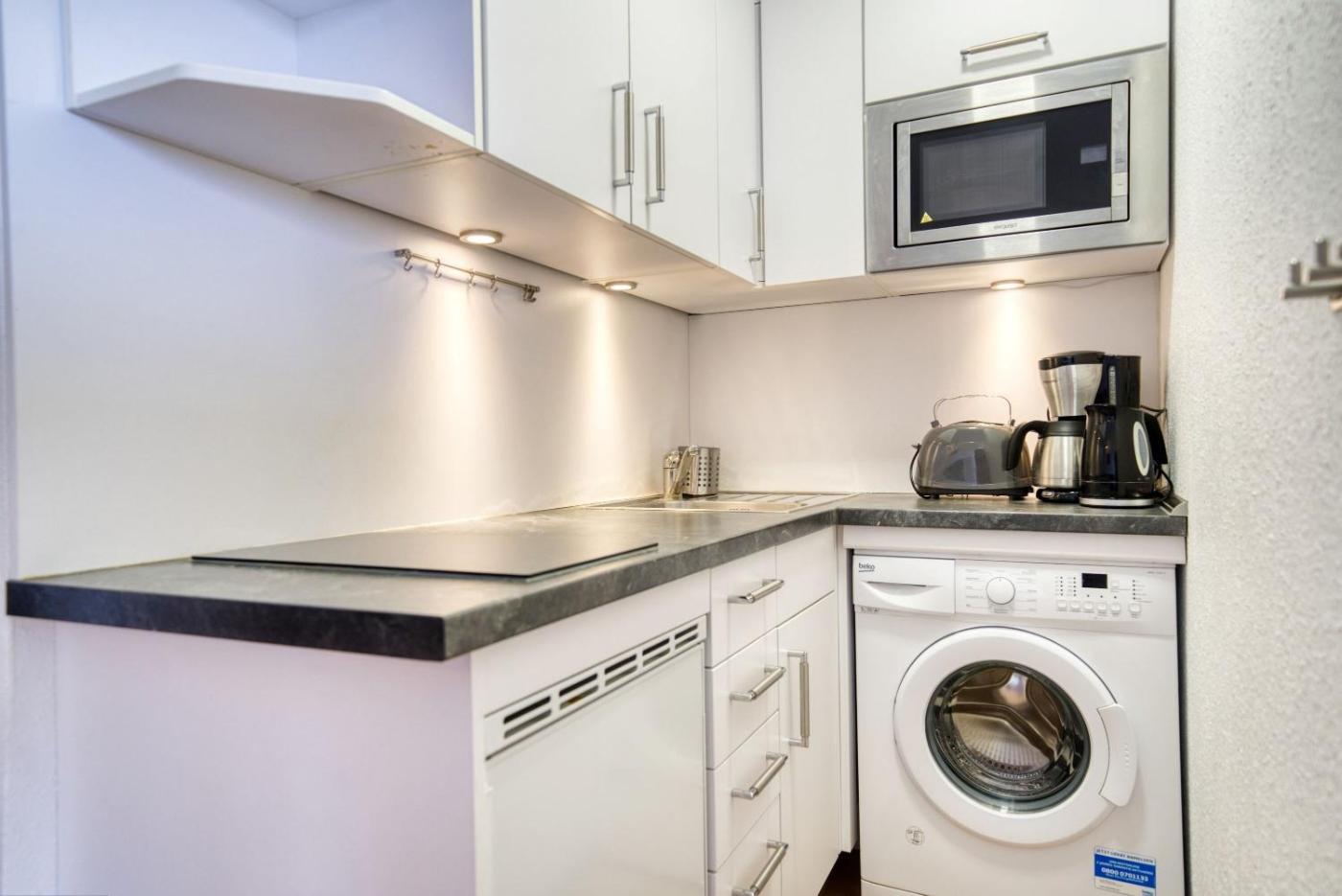 Apartment. The apartment has 1 bedroom, 1 bathroom and a kitchenette. In the kitchenette, guests will find a stovetop, a refrigerator, kitchenware and a microwave. Boasting a balcony with sea views, this apartment also offers a washing machine and a TV. The unit has 3 beds.