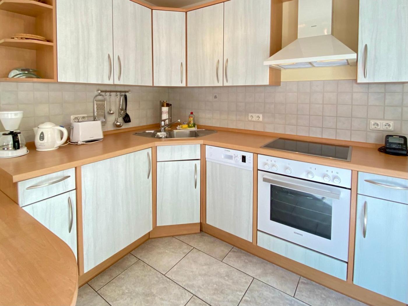 Apartment mit 1 Schlafzimmer. This apartment consists of 1 living room, 1 separate bedroom and 1 bathroom with a walk-in shower and a hairdryer. Meals can be prepared in the kitchenette, which is equipped with a stovetop, a refrigerator, a dishwasher and kitchenware. Featuring a terrace with garden views, this apartment also provides a washing machine and a flat-screen TV with satellite channels. The unit offers 2 beds.