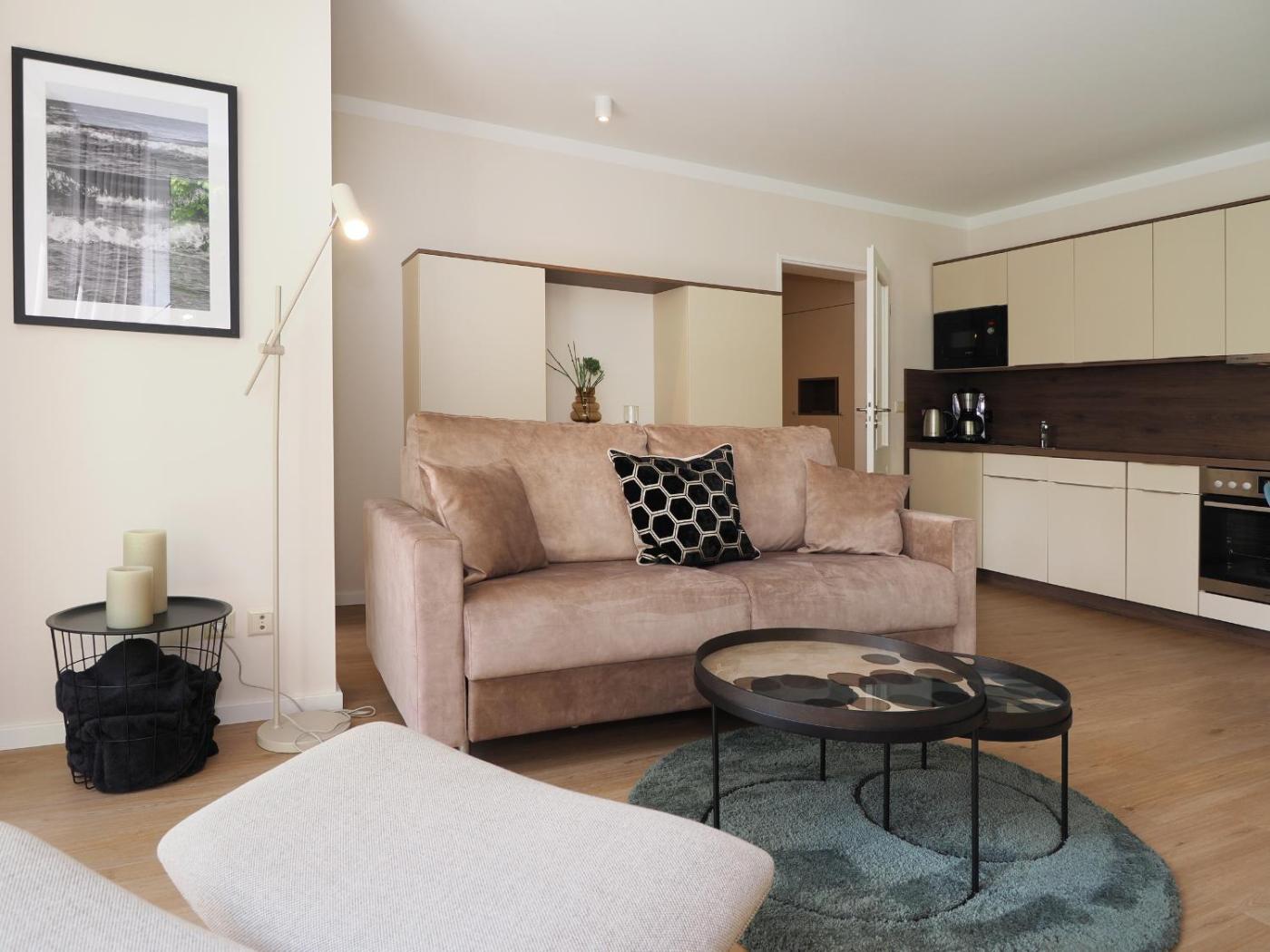 Apartment mit Meerblick. This apartment comprises 1 living room, 1 separate bedroom and 1 bathroom with a shower and a hairdryer. In the well-fitted kitchen, guests will find a stovetop, a refrigerator, a dishwasher and kitchenware. Featuring a balcony with sea views, this apartment also provides a coffee machine and a flat-screen TV. The unit offers 2 beds.