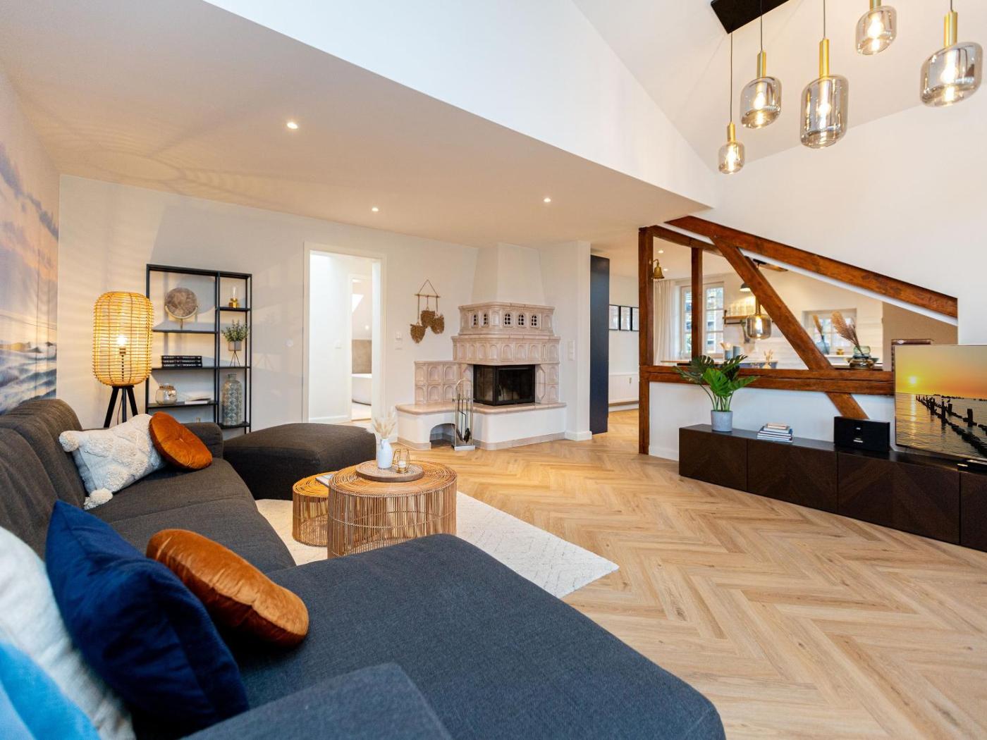 Apartment mit 3 Schlafzimmern und Balkon. This apartment offers a fireplace. This spacious apartment comprises 3 bedrooms, a kitchenette and 1 bathroom with a bath and a shower. The well-equipped kitchenette features a refrigerator, a dishwasher, an oven and a microwave. Featuring a balcony, this apartment also provides a washing machine, a coffee machine and a flat-screen TV with cable channels. The unit offers 3 beds.