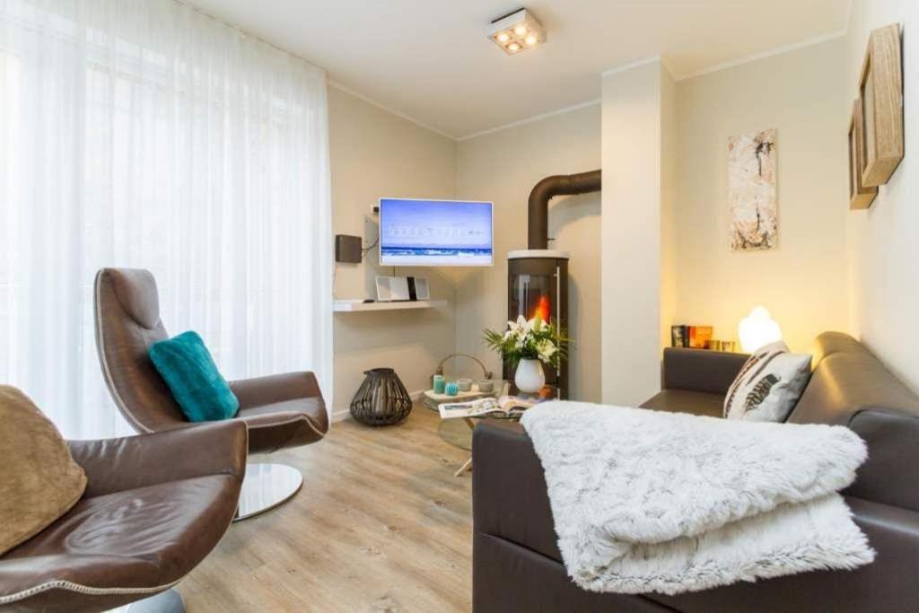 Apartment mit 2 Schlafzimmern und Balkon. The fireplace is the standout feature of this apartment. The spacious apartment features a coffee machine, a safe deposit box, as well as a private bathroom boasting a shower and a hairdryer. The well-equipped kitchenette has a refrigerator, a dishwasher, an oven and a microwave. This apartment provides heating, a flat-screen TV with cable channels and a balcony. The unit has 3 beds.