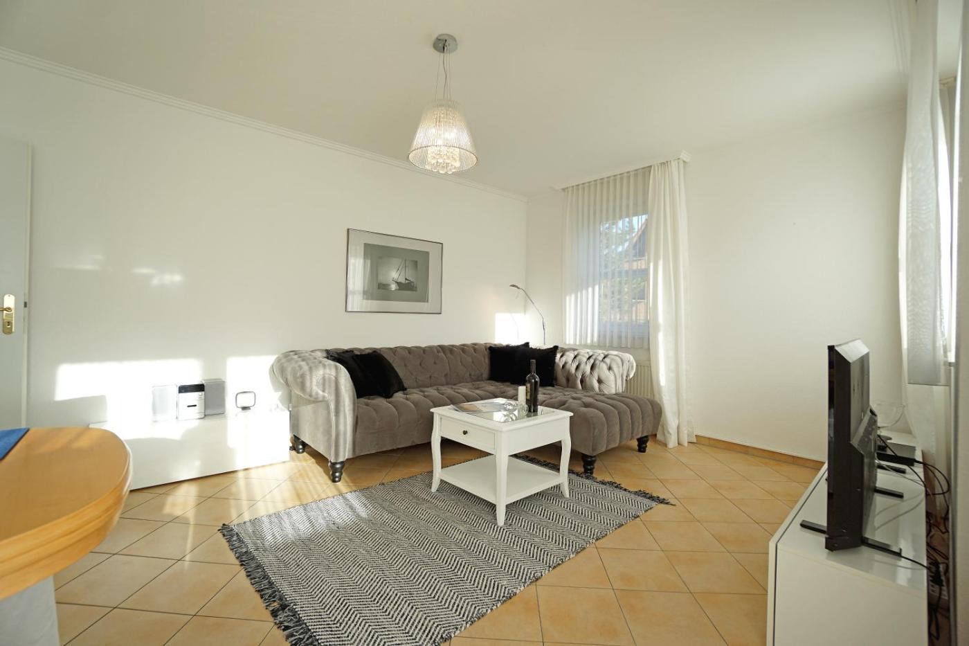 Apartment mit 2 Schlafzimmern und Balkon. This spacious apartment comes with 1 living room, 2 separate bedrooms and 1 bathroom with a shower. Guests can make meals in the kitchen that features a refrigerator, a dishwasher, an oven and a microwave. This apartment features a flat-screen TV with cable channels. The unit has 3 beds.