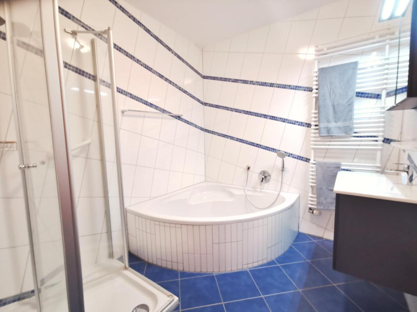 Apartment. Diese geräumige Ferienwohnung mit eigenem Eingang umfasst 2 Schlafzimmer, einen Sitzbereich sowie 1 Bad mit einer Badewanne und einer Dusche. In der Küche, die mit einem Kochfeld, einem Kühlschrank, einer Geschirrspülmaschine und Küchenutensilien ausgestattet ist, können die eigenen Mahlzeiten zubereitet werden. Zu den weiteren Einrichtungen dieser Ferienwohnung gehören eine Terrasse mit Gartenblick, eine Waschmaschine sowie ein Flachbild-Kabel-TV. Die Wohneinheit ist mit 3 Betten ausgestattet.