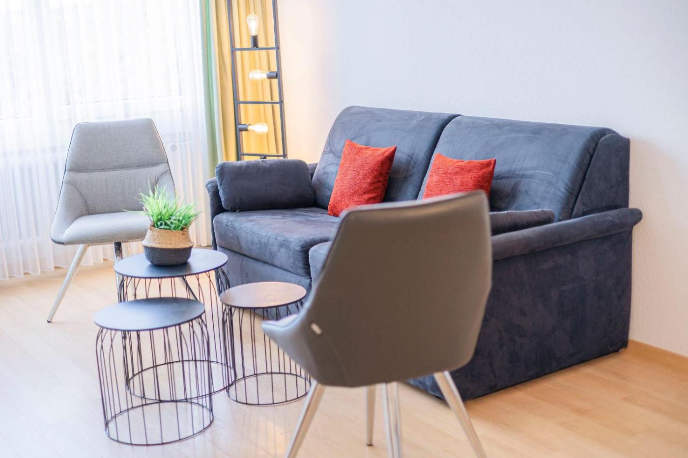 Apartment mit Balkon. This apartment includes 1 bedroom, a seating area with a sofa and 1 bathroom with a bath. In the fully equipped kitchen, guests will find a stovetop, a refrigerator, a dishwasher and kitchenware. This apartment has a coffee machine, heating, a TV with cable channels and a balcony. The unit has 1 bed.