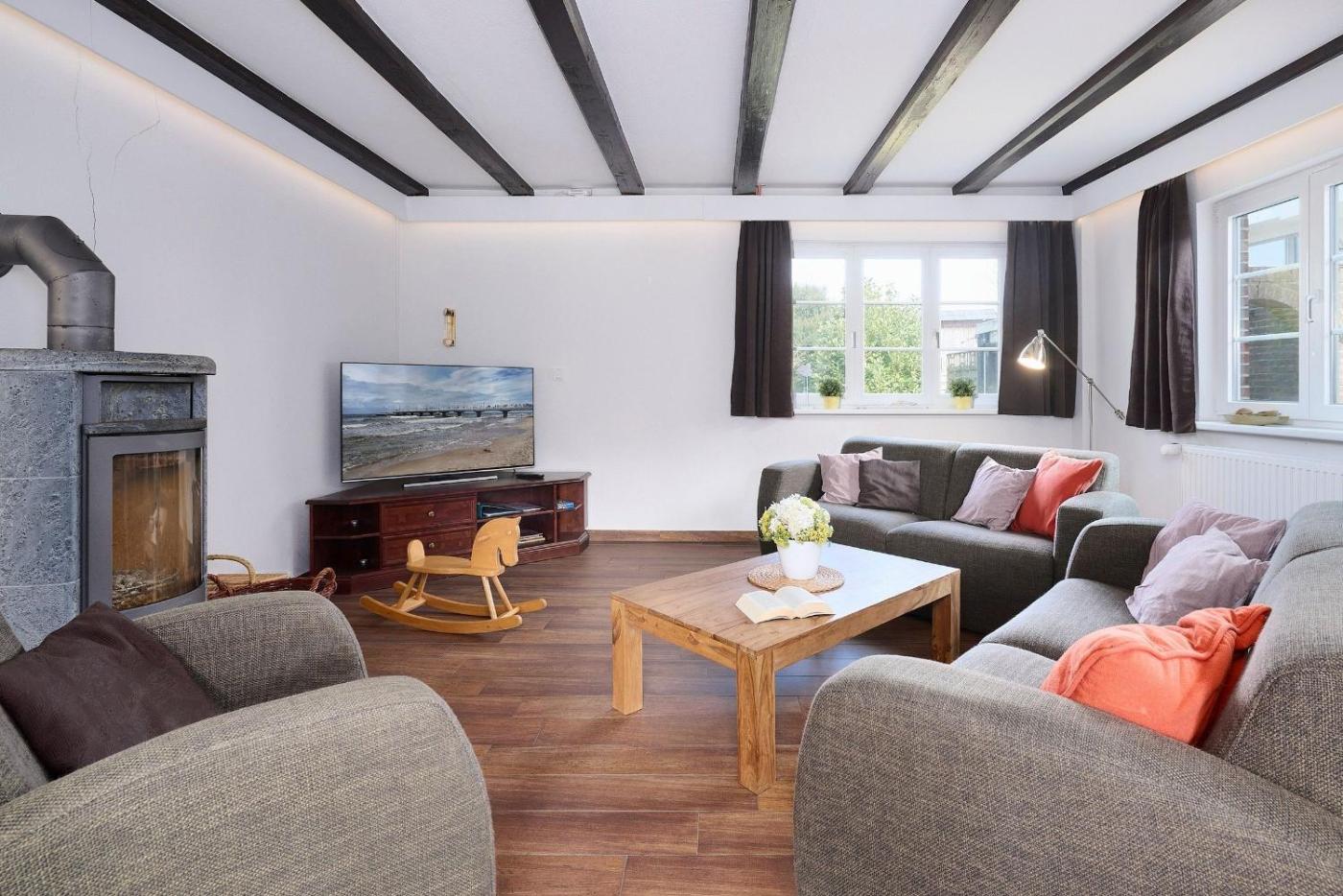 Ferienhaus. Guests will have a special experience as the holiday home offers a fireplace. Featuring 3 bedrooms, this spacious holiday home offers 2 bathrooms with a shower, a seating area and terraceyou can relax. Guests will find a stovetop, a refrigerator, a dishwasher and kitchenware in the fully equipped kitchen. The holiday home also offers a barbecue. The holiday home provides a TV with satellite channels, a washing machine, a private entrance, a tea and coffee maker as well as sea views. The unit has 4 beds.