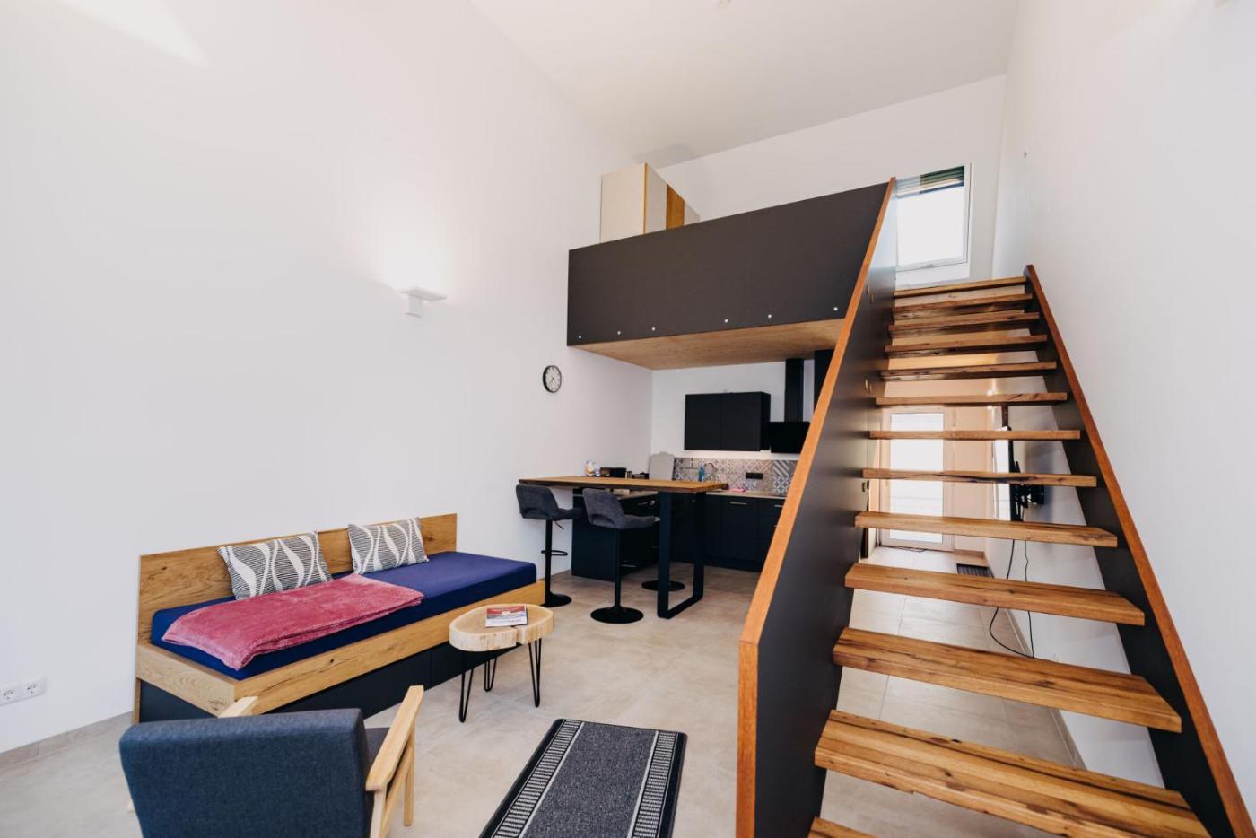 Apartment - auf 2 Etagen. This apartment comes with 1 living room, 1 separate bedroom and 1 bathroom with a shower and a hairdryer. In the kitchenette, guests will find a refrigerator, a dishwasher, kitchenware and a toaster. Boasting a balcony, this apartment also features a coffee machine, a wardrobe and a flat-screen TV. The unit has 2 beds. ;
