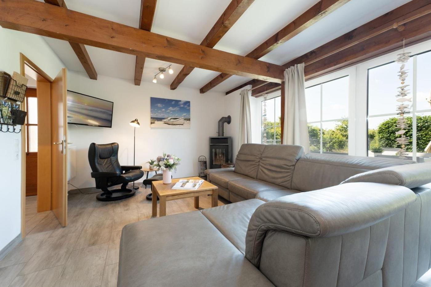 Ferienhaus. This holiday home features a fireplace. Boasting a private entrance, this holiday home includes a kitchen, 3 bedrooms and 1 bathroom with a shower and a hairdryer. Guests will find a stovetop, a refrigerator, a dishwasher and an oven in the fully equipped kitchen. The holiday home also features a barbecue. This holiday home has a washing machine, a tea and coffee maker, a TV and a terrace. The unit has 3 beds.