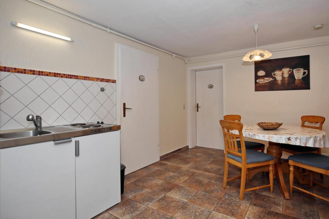 Apartment mit Terrasse. Featuring 1 bedroom, this apartment offers 1 bathroom with a bath, a seating area and terraceyou can relax. Guests can make meals in the kitchen that is fitted with a stovetop, a refrigerator, kitchenware and a microwave. Boasting an outdoor dining area, this apartment also offers a coffee machine, a wardrobe and a TV with cable channels. The unit has 2 beds.