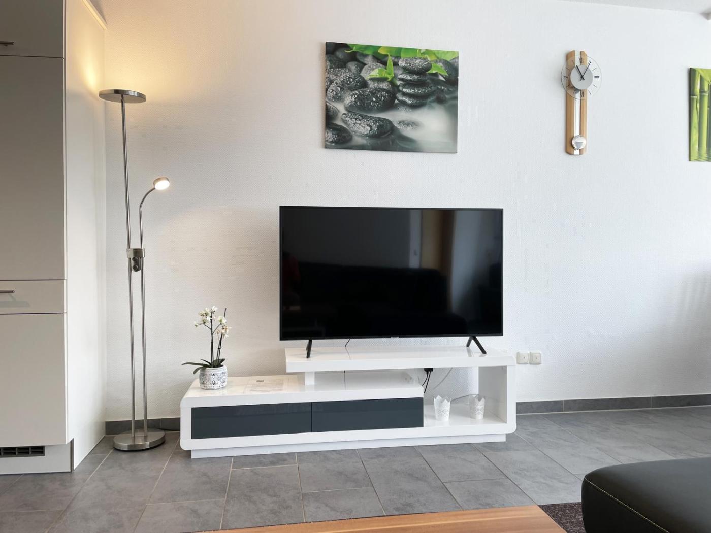 Apartment mit 2 Schlafzimmern. This apartment consists of 1 living room, 2 separate bedrooms and 1 bathroom with a shower and a hairdryer. Guests can make meals in the kitchenette that is equipped with a stovetop, a refrigerator, a dishwasher and kitchenware. Featuring a balcony with garden views, this apartment also provides a washing machine and a flat-screen TV with satellite channels. The unit offers 3 beds.