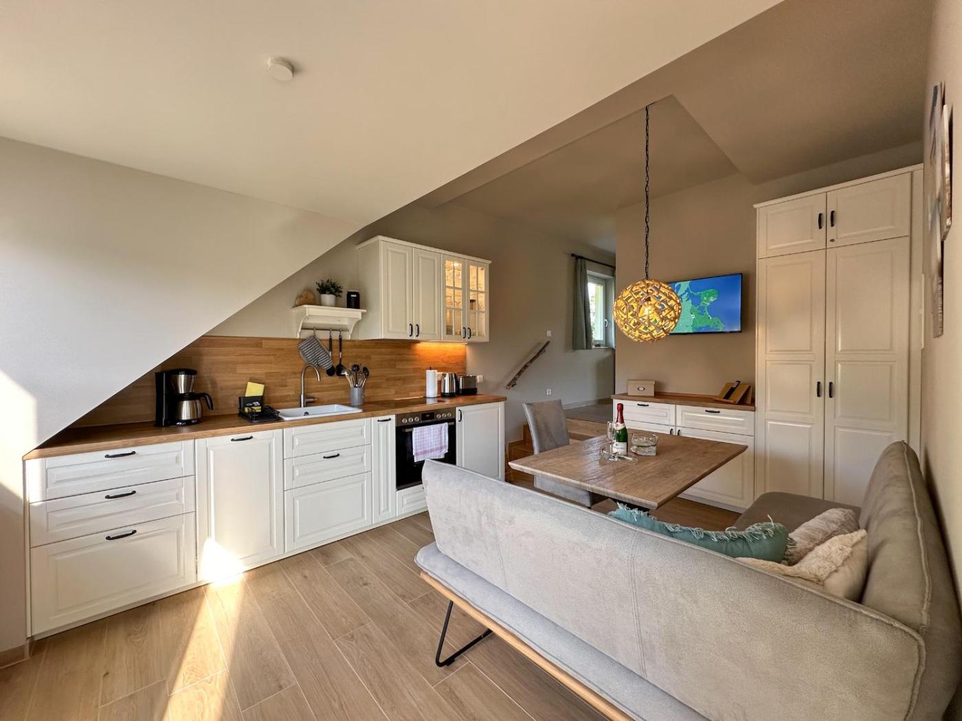 Apartment mit Meerblick. This apartment includes a kitchen, a seating area, 1 separate bedroom and 1 bathroom with a shower and a hairdryer. In the well-fitted kitchen, guests will find a stovetop, a refrigerator, a dishwasher and kitchenware. Boasting a balcony with sea views, this apartment also offers a coffee machine and a TV. The unit has 1 bed.