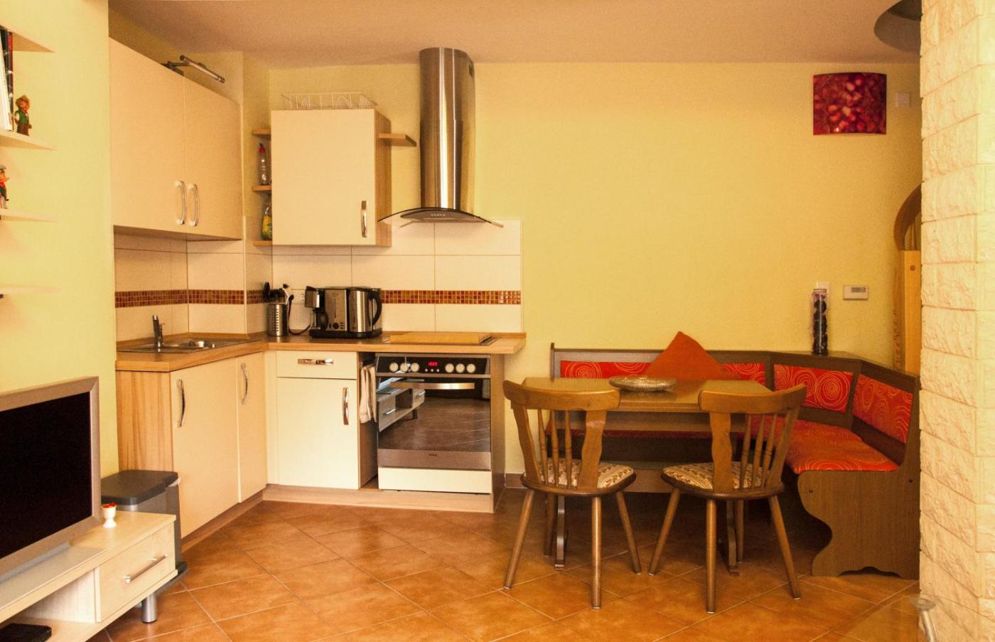 Haus mit 2 Schlafzimmern. Dieses Ferienhaus verfügt über eine voll ausgestattete Küche und einen Sitzbereich.