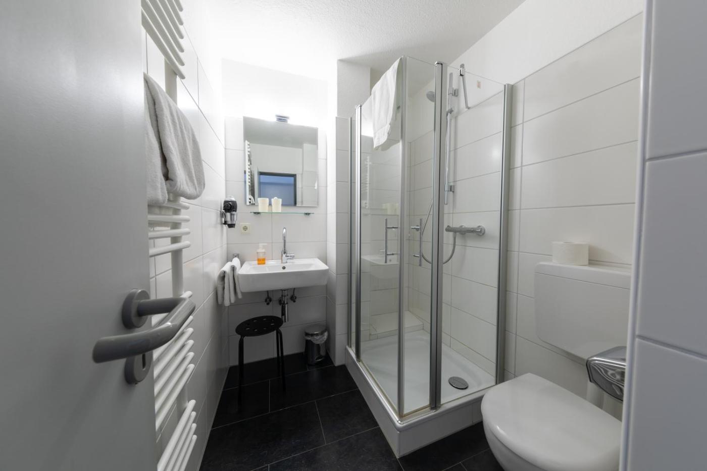 Jedes Zimmer ist mit Sat-TV und einem Schreibtisch ausgestattet. Auch ein eigenes Bad mit einer Dusche und einem Haartrockner ist vorhanden.
