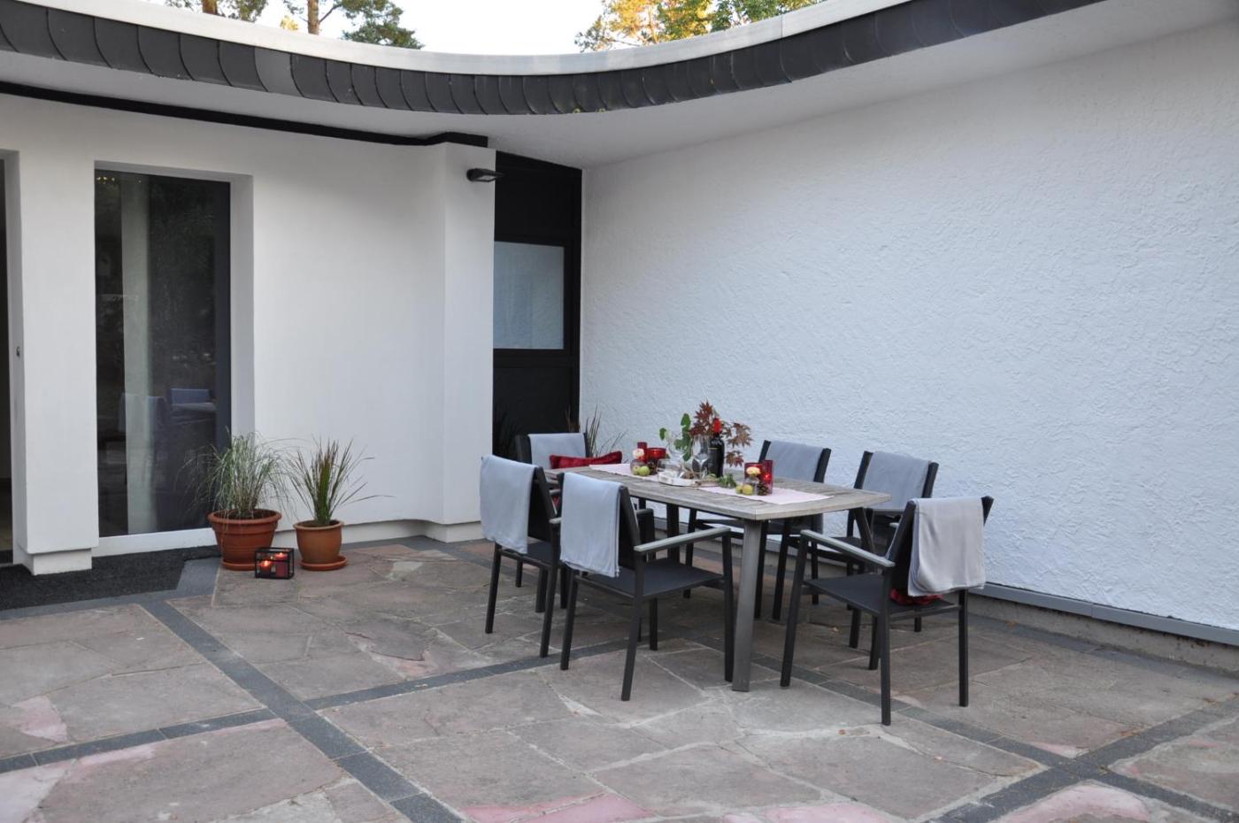 Apartment mit Gartenblick. The fireplace is a top feature of this apartment. This spacious apartment comes with 1 living room, 2 separate bedrooms and 1 bathroom with a bath and a shower. Guests will find a stovetop, a refrigerator, a dishwasher and kitchenware in the fully equipped kitchen. The apartment also includes a barbecue. Boasting a terrace with garden views, this apartment also features a washing machine and a flat-screen TV with satellite channels. The unit has 4 beds.