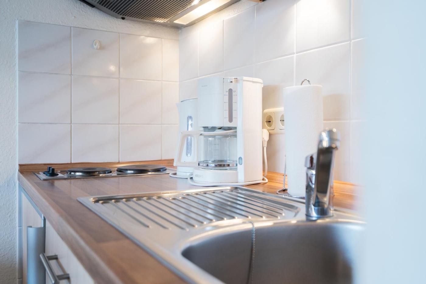 Apartment mit Terrasse. This apartment comprises 1 living room, 1 separate bedroom and 1 bathroom with a shower and a hairdryer. In the well-equipped kitchen, guests will find a stovetop, a refrigerator, a microwave and a toaster. This apartment features a coffee machine, a seating area, a TV and a terrace. The unit offers 2 beds.