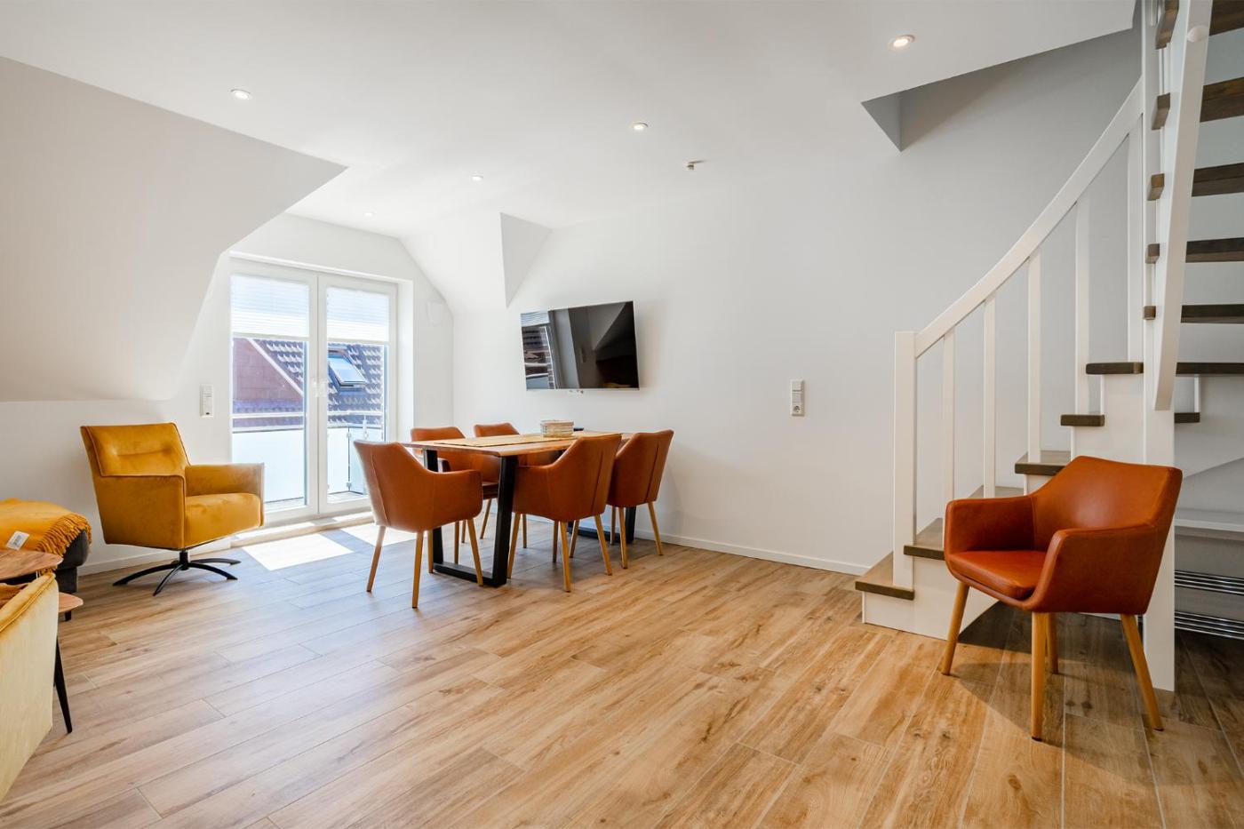 Apartment mit Balkon. This spacious apartment includes a kitchen, a seating area, 3 separate bedrooms and 1 bathroom with a shower and a hairdryer. Guests can make meals in the kitchen that is fitted with a stovetop, a refrigerator, a dishwasher and kitchenware. Boasting a balcony, this apartment also offers a coffee machine, a wardrobe and a TV. The unit has 4 beds.
