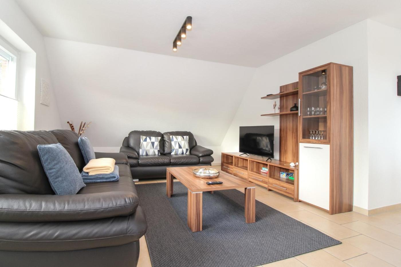 Apartment mit Balkon. This spacious apartment consists of a kitchen, a seating area, 2 separate bedrooms and 1 bathroom with a shower and a hairdryer. Meals can be prepared in the kitchen, which is equipped with a stovetop, a refrigerator, a dishwasher and kitchenware. This apartment features a washing machine, a coffee machine, a TV and a balcony. The unit offers 2 beds.