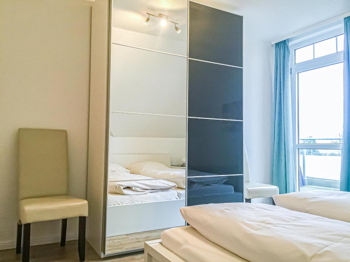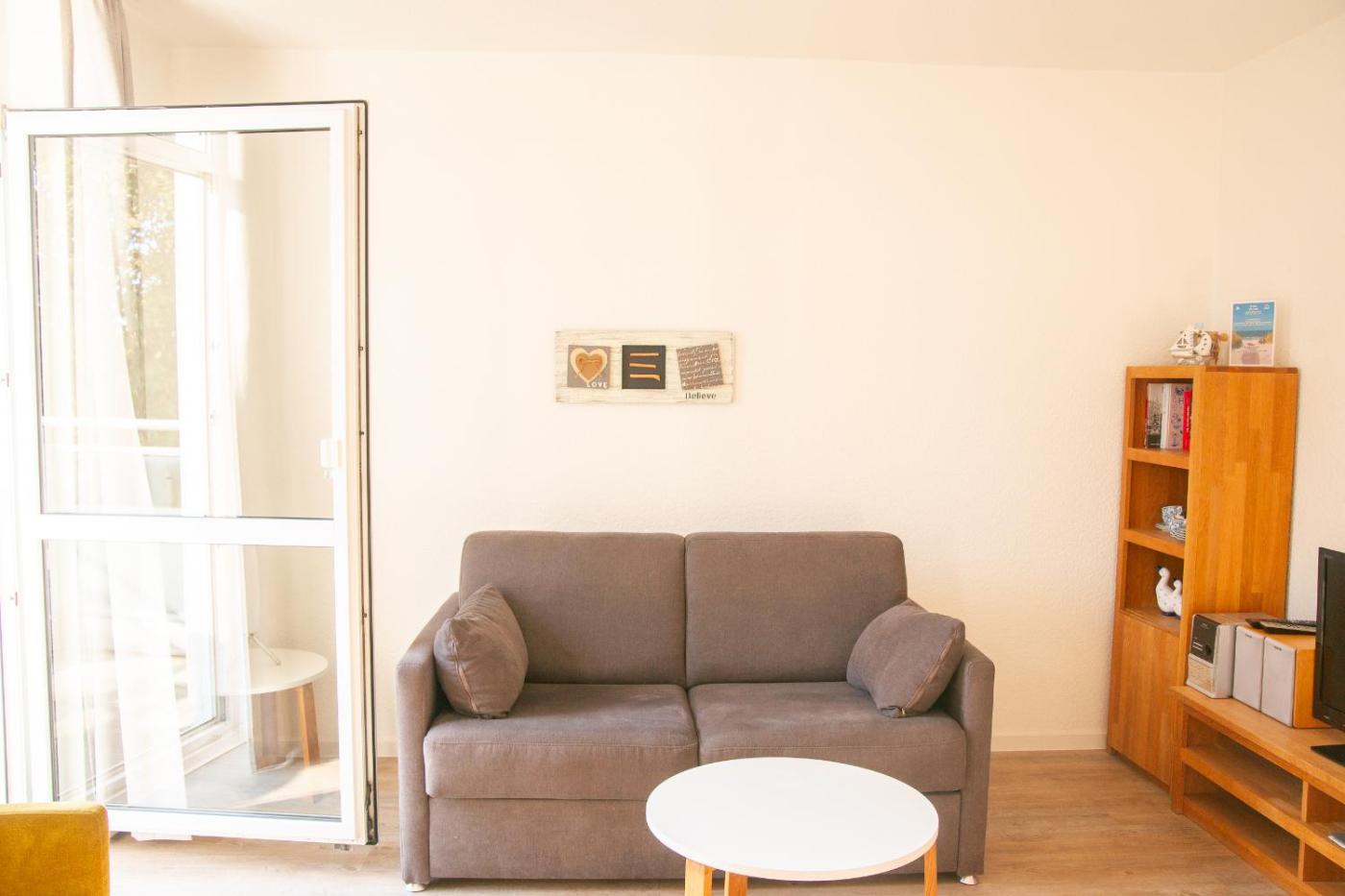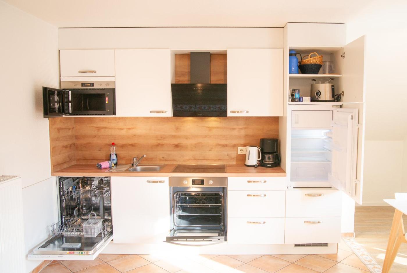 Apartment mit Balkon. This apartment features 1 living room, 1 separate bedroom and 1 bathroom with a shower and a hairdryer. Meals can be prepared in the kitchen, which has a stovetop, a refrigerator, a dishwasher and kitchenware. This apartment has a washing machine, a coffee machine, a TV and a balcony. The unit has 2 beds.