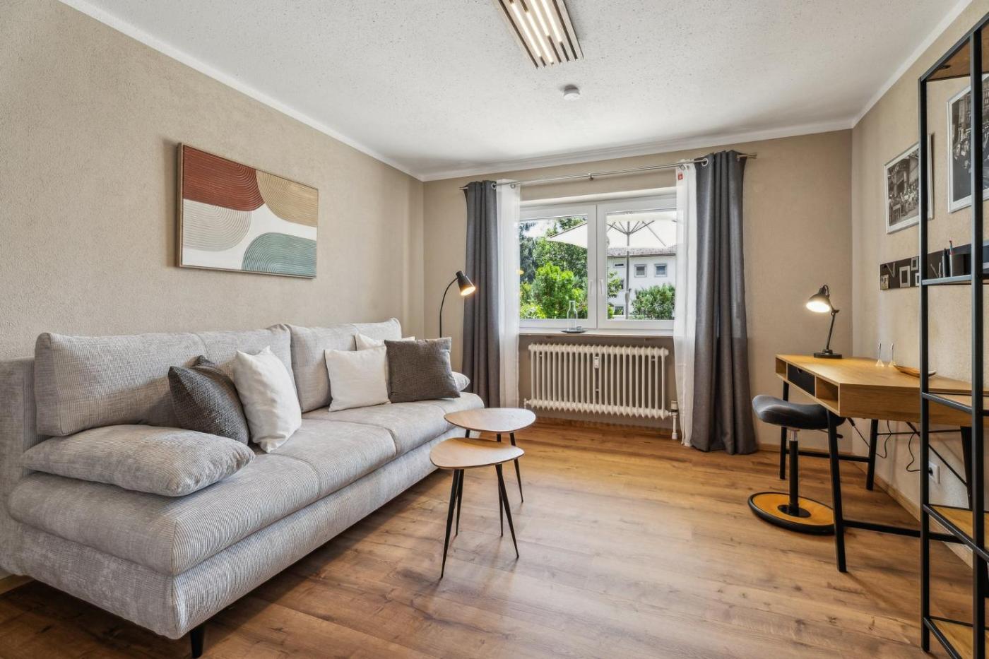 Deluxe Apartment mit 2 Schlafzimmern und Gartenblick. Featuring a private entrance, this spacious apartment also consists of 2 bedrooms, a seating area and 1 bathroom with a walk-in shower and a hairdryer. Guests can make meals in the kitchen that is equipped with a stovetop, a refrigerator, a dishwasher and kitchenware. Boasting a terrace with garden views, this apartment also provides soundproof walls and a flat-screen TV with satellite channels. The unit offers 2 beds.