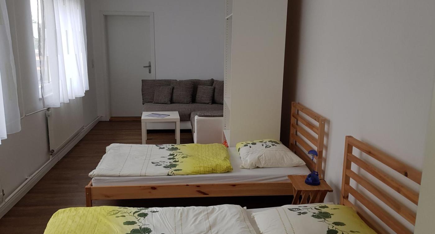 Dreibettzimmer. The triple room includes a shared bathroom fitted with a hairdryer. The triple room offers a washing machine, a wardrobe, heating, a flat-screen TV, as well as city views. The unit has 2 beds. ;