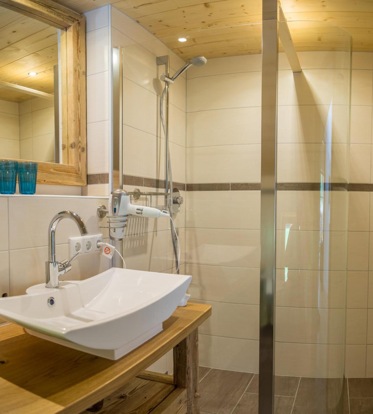 Apartment mit Blick auf die Berge. This spacious apartment comprises 1 living room, 2 separate bedrooms and 1 bathroom with a walk-in shower and a hairdryer. Meals can be prepared in the kitchenette, which is equipped with a stovetop, a refrigerator, a dishwasher and kitchenware. Featuring a balcony with garden views, this apartment also provides a tea and coffee maker and a flat-screen TV with cable channels. The unit offers 2 beds.