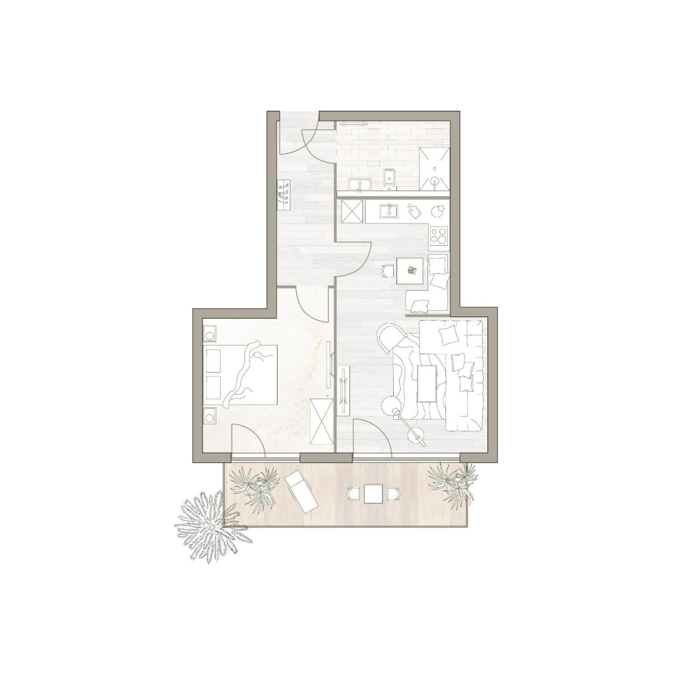 Apartment mit Terrasse. Guests will have a special experience as this apartment features a sauna. Featuring 1 bedroom, this apartment offers 1 bathroom with a shower, a seating area and terraceyou can relax. The fully equipped kitchen features a stovetop, a refrigerator, a dishwasher and kitchenware. The apartment offers a washing machine, a coffee machine, a wardrobe, a sofa, as well as a flat-screen TV with satellite channels. The unit has 1 bed.